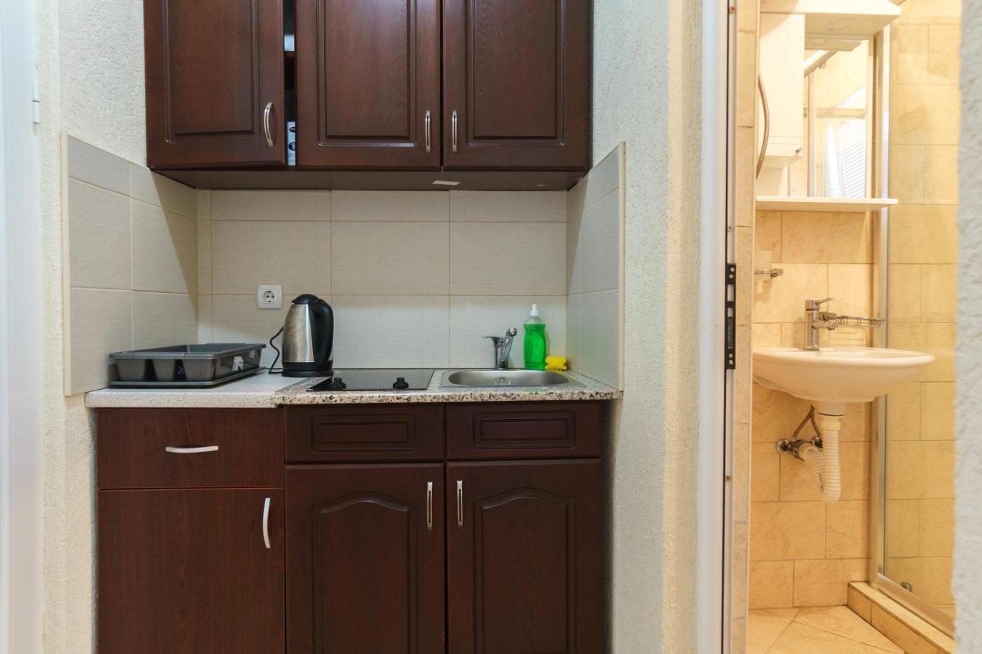 Studio Apartment. Boasting a private entrance, this air-conditioned apartment includes a kitchen, 1 bedroom and 1 bathroom with a walk-in shower and a hairdryer. Guests will find a stovetop, a refrigerator, kitchenware and an oven in the kitchen. The apartment also features a barbecue. This apartment has a washing machine, a tea and coffee maker, a flat-screen TV with satellite channels and an outdoor dining area. The unit has 2 beds.