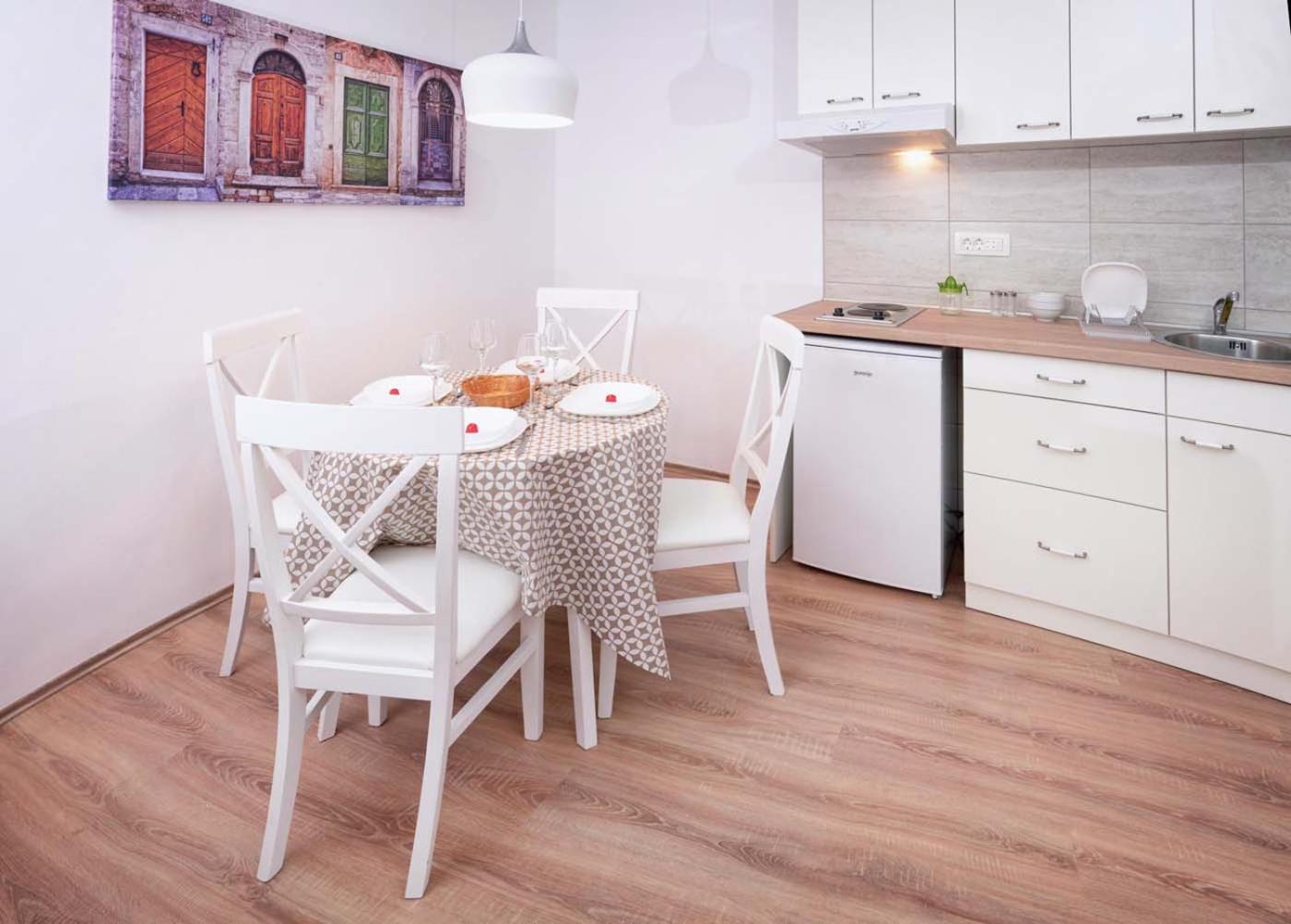 One-Bedroom Apartment. This air-conditioned apartment is comprised of 1 living room, 1 separate bedroom and 1 bathroom with a shower. The well-fitted kitchen features a stovetop, a refrigerator, kitchenware and an electric kettle. This apartment has a dining area, a wardrobe, flat-screen TV, as well as chocolate for guests. The unit offers 3 beds.