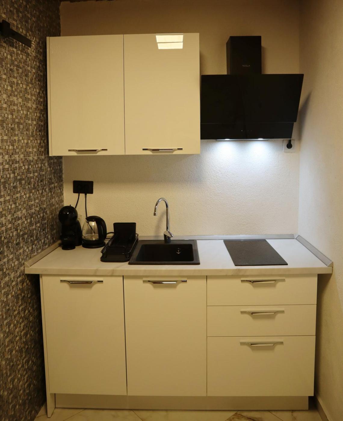 Queen Studio. The studio provides a tiled floor, heating, as well as a private bathroom boasting a walk-in shower and a hairdryer. Guests can make meals in the kitchen that has a stovetop, a refrigerator, a dishwasher and kitchenware. The air-conditioned studio offers a flat-screen TV with streaming services, a coffee machine, a seating area, a wardrobe as well as sea views. The unit has 1 bed. ;
