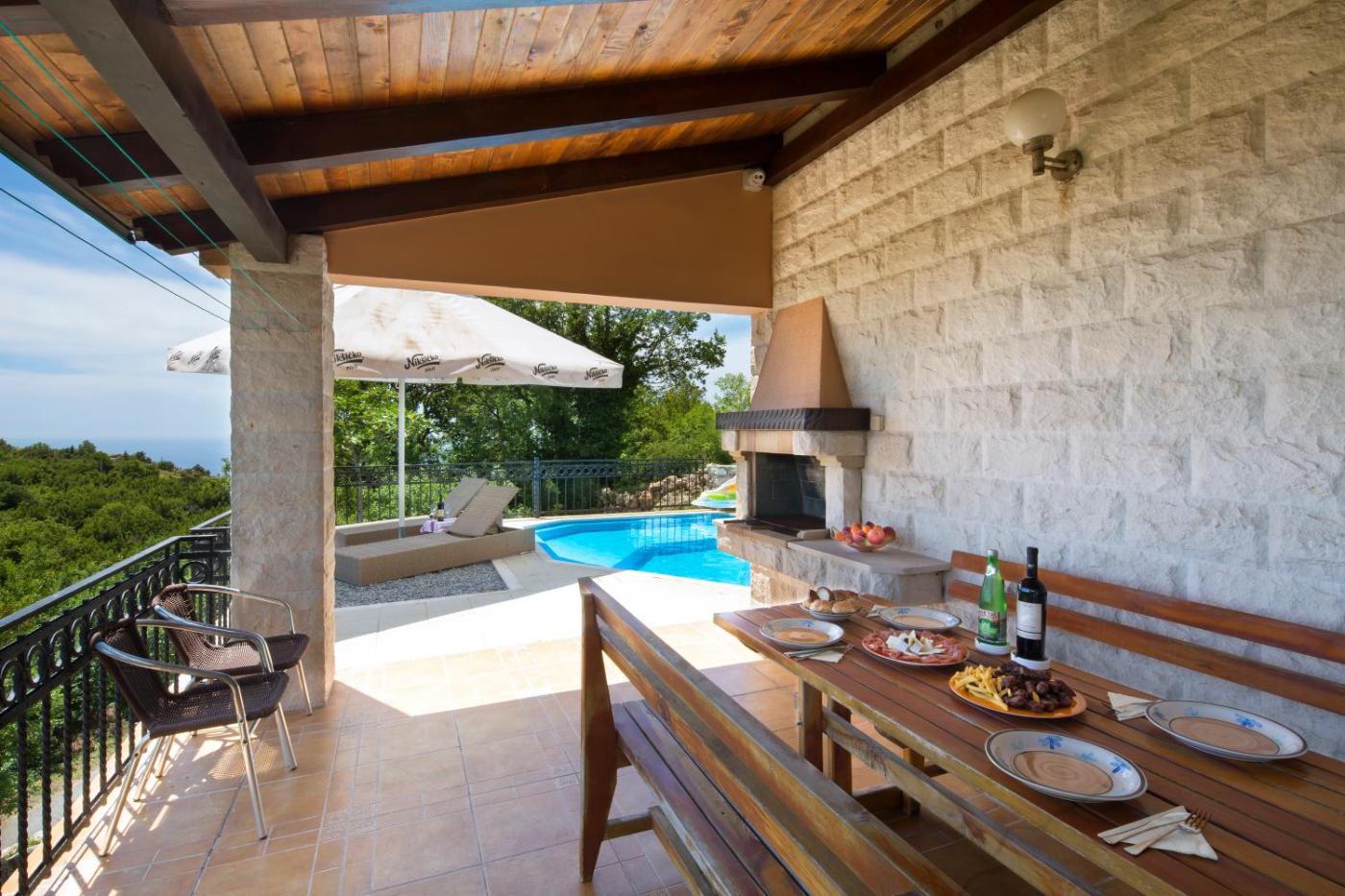 Two-Bedroom Villa. The pool with a view and fireplace are the special features of this villa. Boasting a private entrance, this air-conditioned villa includes 1 living room, 2 separate bedrooms and 2 bathrooms with a shower and a bidet. Guests will find a stovetop, a refrigerator, kitchenware and an oven in the fully equipped kitchen. The villa also features a barbecue. Featuring a terrace with sea views, this villa also offers a washing machine and a flat-screen TV. The unit has 5 beds.