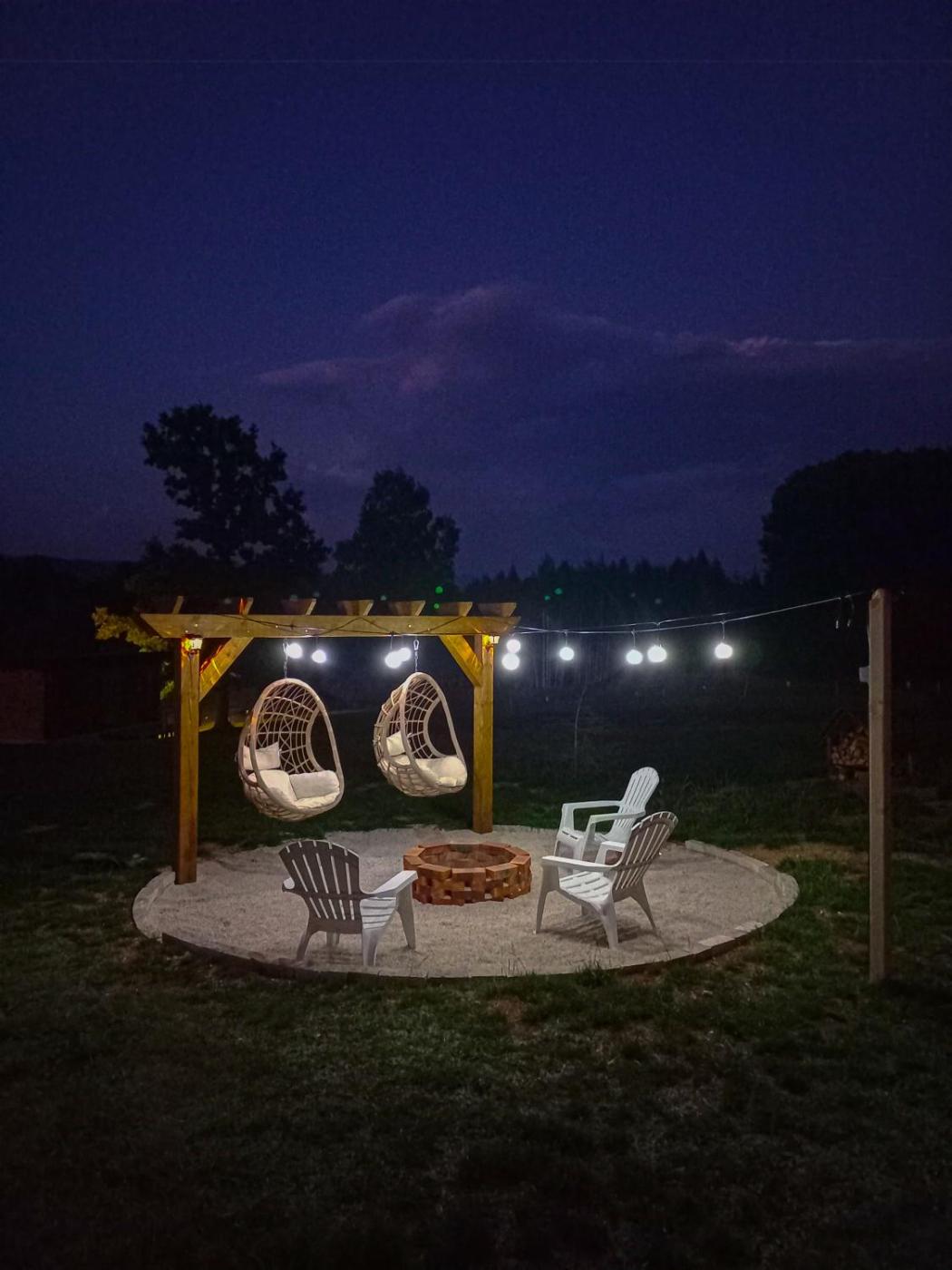 Guests can also warm themselves near outdoor fireplace after a day of cycling.