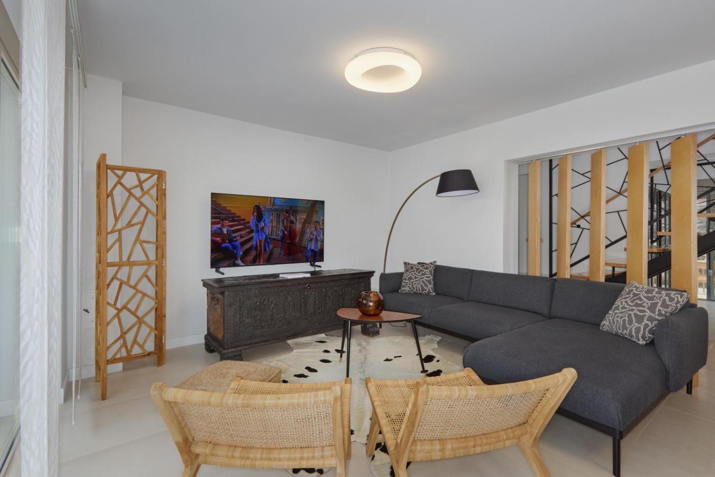 Villa. This villas special features are the private pool and the hot tub. Featuring a private entrance, this air-conditioned villa consists of 1 living room, 4 separate bedrooms and 3 bathrooms with a shower and a hairdryer. The fully equipped kitchen features a stovetop, a refrigerator, a dishwasher and an oven. Boasting a terrace with sea views, this villa also provides soundproof walls and a flat-screen TV. The unit offers 4 beds.